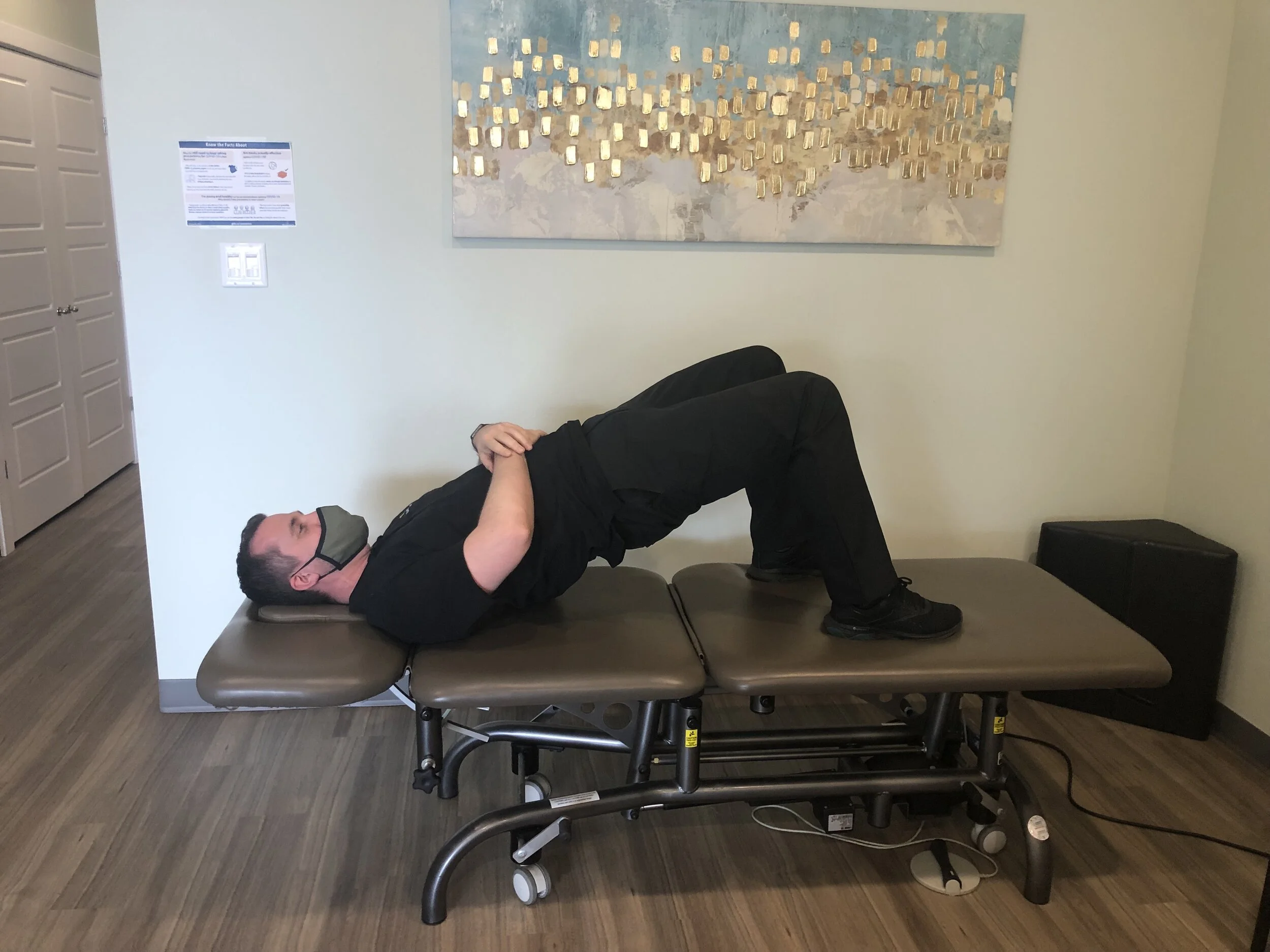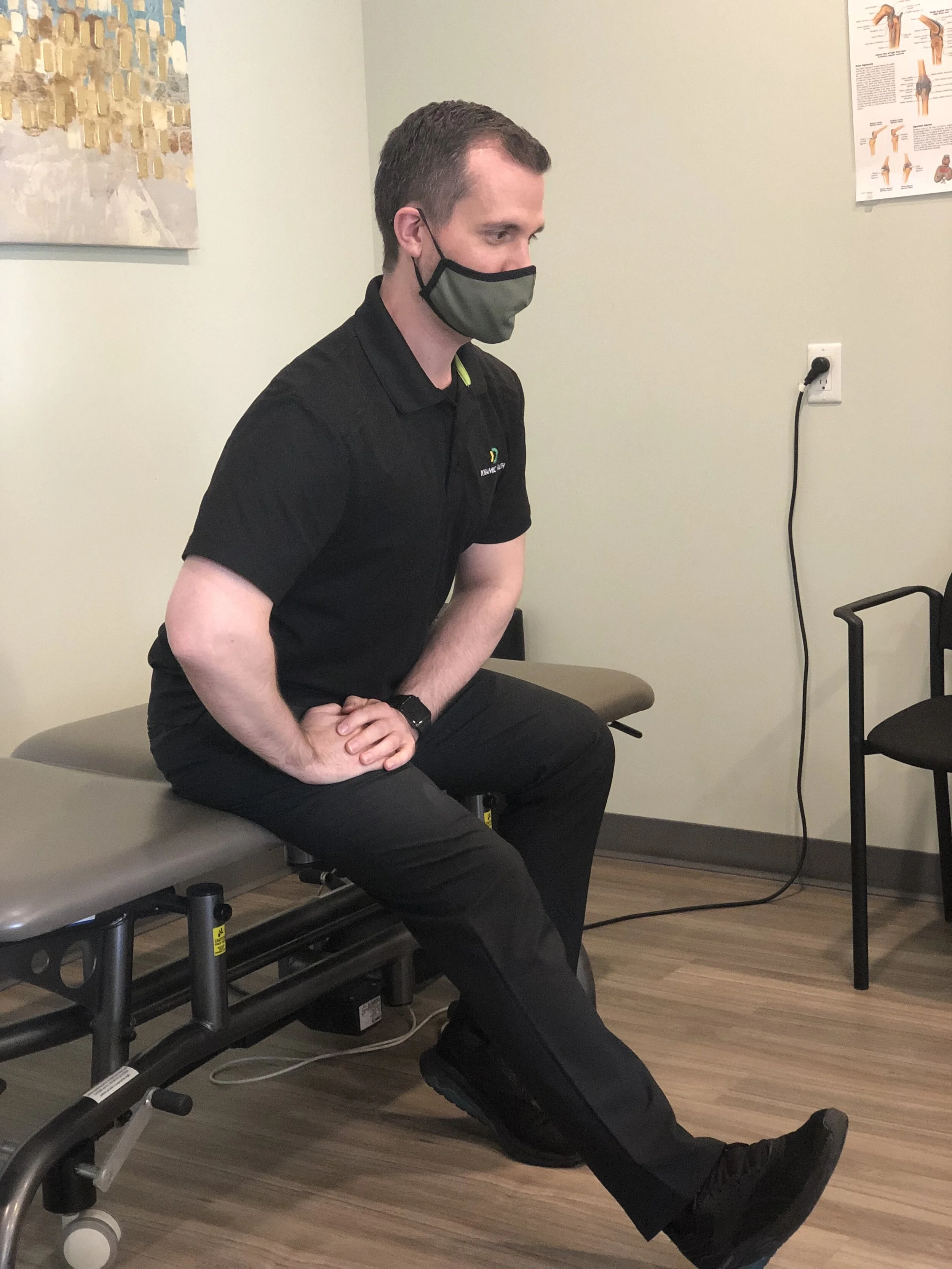 1) Figure 4 - While seated, bring the foot of your affected leg up on top of the opposite knee, resting the outside of your ankle near the knee cap on the opposite leg. Push your knee gently towards the floor and lean forward with your back straight until you feel a slight stretch in your hip. Hold for 30 seconds.