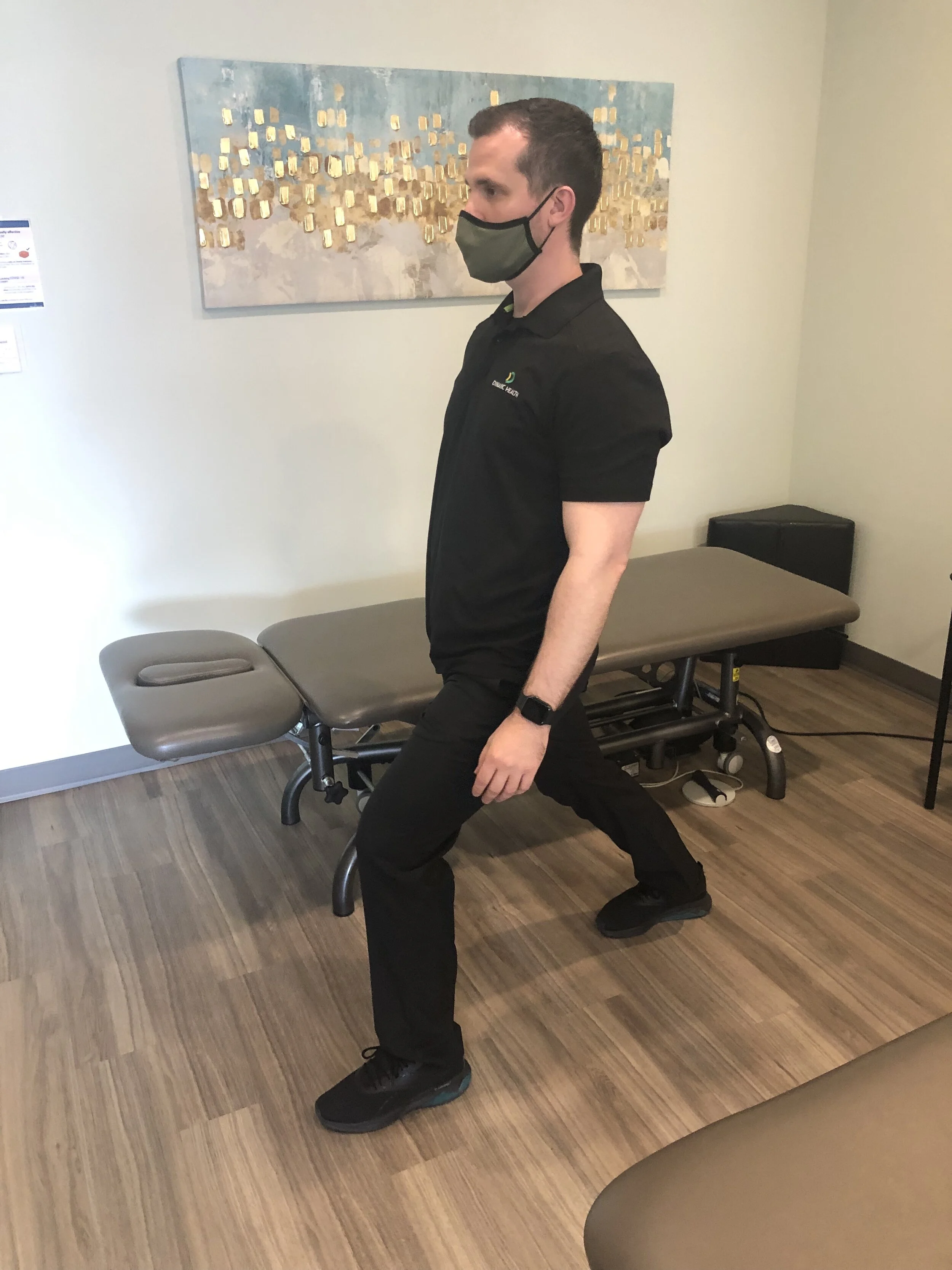 3) Lunge Stretch - In a standing position, put your affected leg back, keep your back straight, and lunge forward with your opposite leg until a stretch is felt in the front of your affected hip. Hold for 30 seconds.