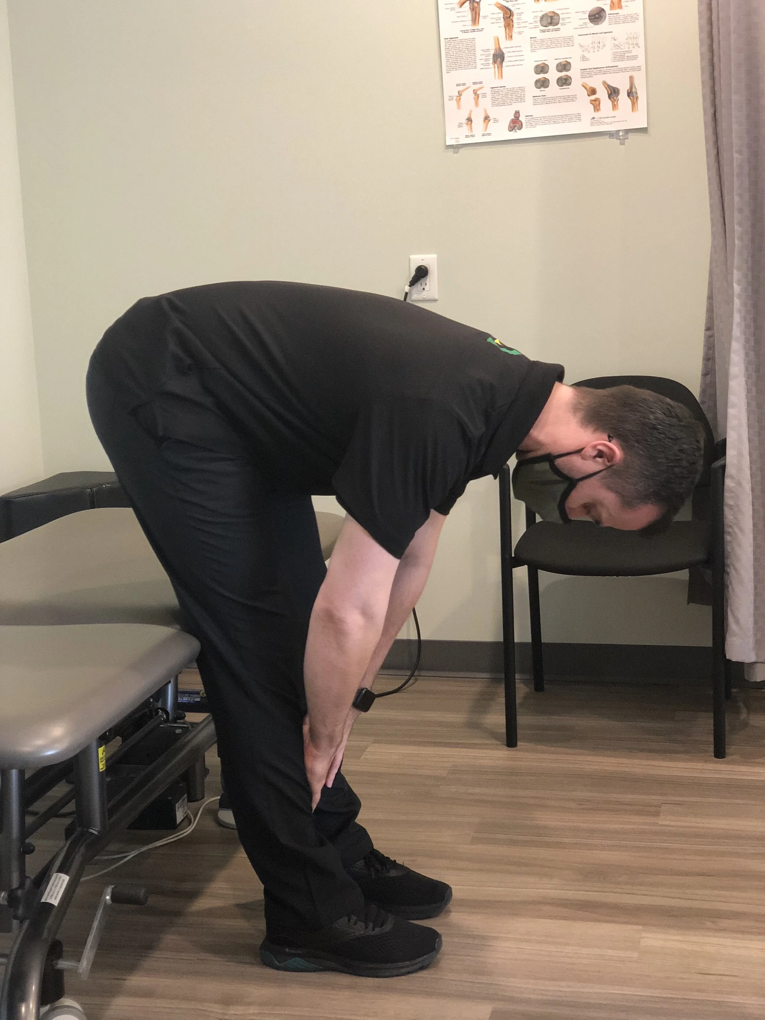 2) Forward Fold - This movement feels great on the back, glutes and backs of the legs. Start by standing with your feet slightly apart. Bend forward starting from the neck and slowly letting each segment of your spine fold forward until your reach as low as you can. Hold for 2-3 seconds while breathing out at the bottom of the movement. Return to standing by reversing the movement. Do 10 repetitions daily.